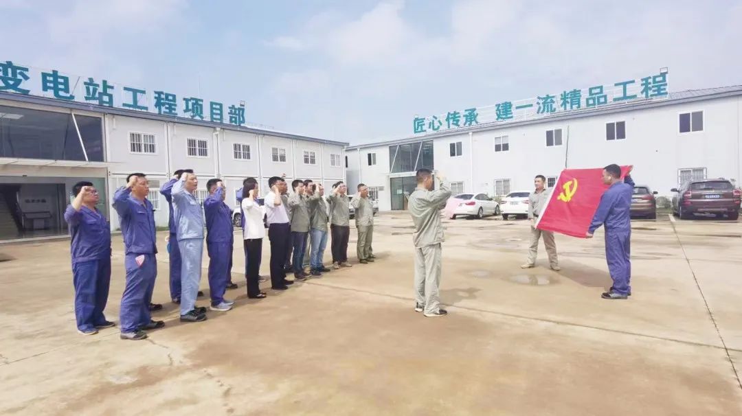 ➤發揮黨支部在生產履約中的戰鬥堡壘(lěi)作用。sg99.xy丝瓜视频電氣在武漢1000千伏變電站新建工程現場開展“旗幟領航、爭先進位”主題黨日活動,組織現場黨員(yuán)重溫入黨誓詞、學(xué)習(xí)國(guó)家安全生產月專題宣傳片,推動黨建與施(shī)工現場安全生產融合互(hù)促。