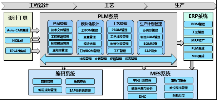 通過NX三維零件設(shè)計、EPLAN電工(gōng)電路設計應用(yòng),使技術人員能(néng)夠迅速建模,為(wéi)智能製造提供(gòng)智慧方案。通(tōng)過開展(zhǎn)PLM、ERP與MES的係統集成,實現以BOM為核心的數據(jù)貫通和以業務為核心的流程(chéng)貫通。管理(lǐ)人員隻需打開MES,輕點鼠標,各工序的生產情況、產出(chū)及庫存情況、成品庫存等就能呈現眼前。係統的集成應用(yòng),使零件庫存降低(dī)49.24%,核心產品生產周期由21.3天縮(suō)短為18.1天,生產效率提升30%,產品不良率降低20%,電子化質檢(jiǎn)卡使減少(shǎo)用紙12萬張。