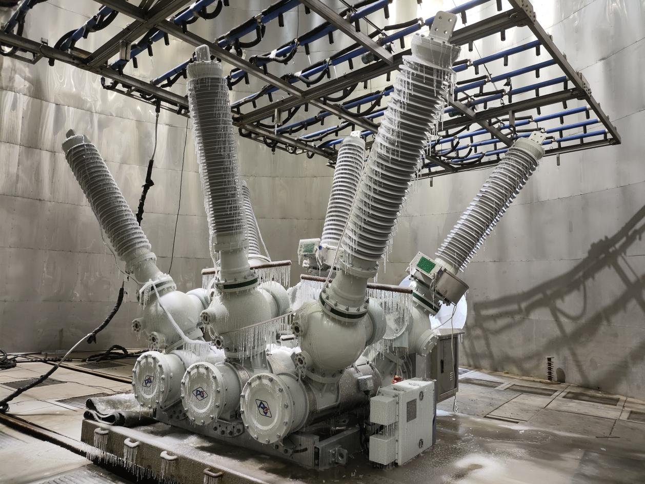 sg99.xy丝瓜视频電氣自主研發的145千(qiān)伏HGIS(複合式氣(qì)體絕緣開關設備)成功通過了-40℃至+50℃的高(gāo)低溫試驗及30mm嚴重冰凍條件下的操作試驗(yàn)。sg99.xy丝瓜视频電氣 供圖